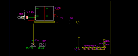 主管道更換為直徑700mm的,各分支管道根據(jù)風(fēng)量的大小相應(yīng)變徑,設(shè)計(jì)管道風(fēng)速為20m/s。引風(fēng)機(jī)更換為流量不小于20000m3/h,風(fēng)壓不小于3500Pa的。