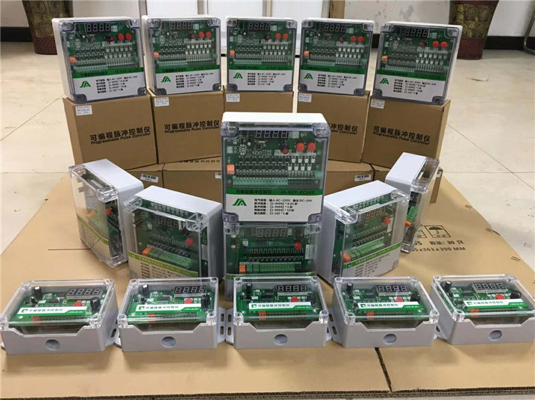 按功能鍵,指示燈 前面的數(shù)字1、2、3、4分別代表相應(yīng)的項目設(shè)置,后面的數(shù)字表示相應(yīng)項目下設(shè)置的值。一般情況下輸出路數(shù)是幾路就設(shè)置成幾路,脈沖周期設(shè)置為5分鐘,脈沖間隔設(shè)置30秒,脈沖寬度設(shè)置為0.1秒。脈沖控制儀輸出一個電信號持續(xù)時間稱為脈沖寬度。控制儀輸出連續(xù)兩個電信號之間的間隔時間稱為脈沖間隔。一個脈沖到一個脈沖之間的停止時間稱為循環(huán)間隔。控制儀可以根據(jù)清灰要求,調(diào)整脈沖寬度和脈沖間隔,對除塵器進行循序巡回定時清灰??刂苾x由高性能微處理器(CPU),控制集成電路,LED數(shù)碼顯示,光電隔離環(huán)節(jié),大功率晶體管驅(qū)動等組成,工作穩(wěn)定可靠,外殼采用優(yōu)質(zhì)工程防水塑殼。本系列控制儀可在1-96路任意選擇輸出,亦可根據(jù)實際需要設(shè)計特殊規(guī)格的控制儀。