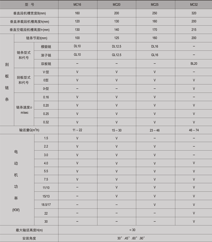 MC型埋刮板輸送機(jī)主要參數(shù)